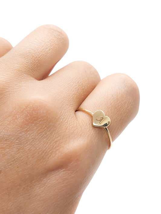 Anillo INICIAL personalizado corazón liso grande oro 10k