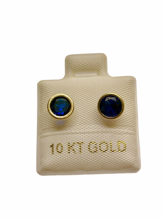 Par de Broquel básico con circonita color Azul echo de ORO 10K