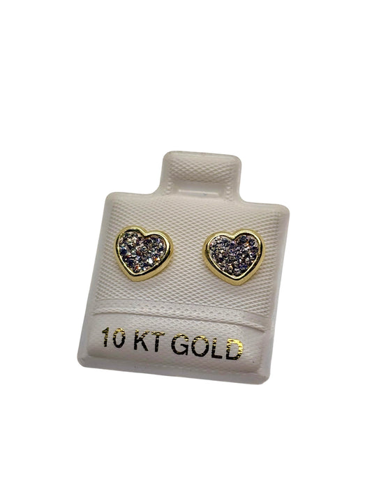 Par de Broquel en forma de corazón con brillos echo de ORO 10k