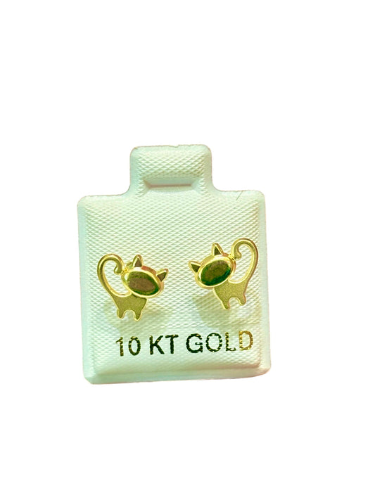 Par de Broquel en forma de gato liso echo de ORO 10K