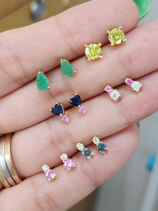 Par de Broquel esmalte estrella y corazón rosa y verde menta oro de 10k DORADO