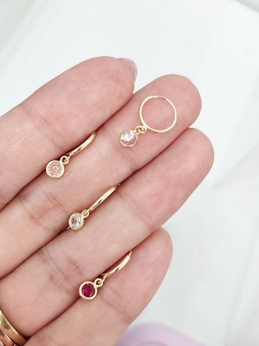 Par arracada mini con dije circonita baby rosaOro 10K