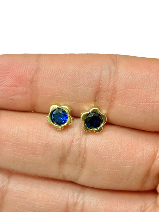 Par de Broquel básico con circonita color Azul echo de ORO 10K