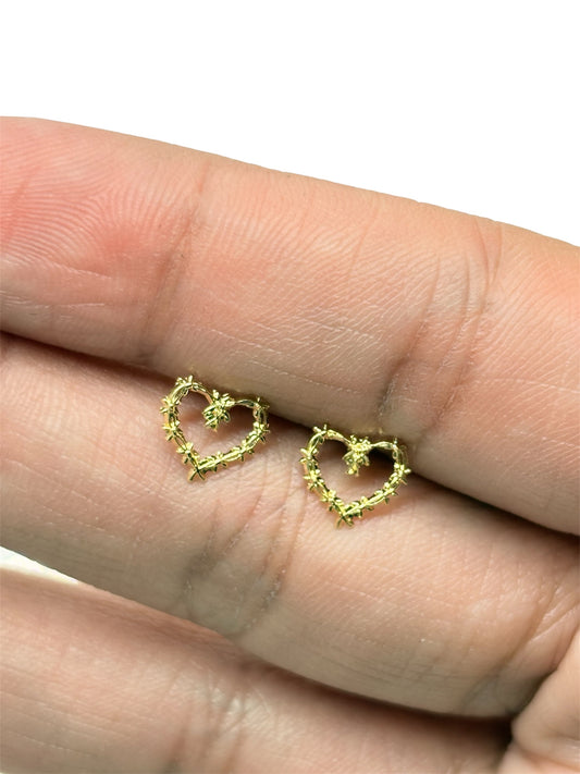 Par de Broquel Corazon espinas Karol G Chico Oro 10K