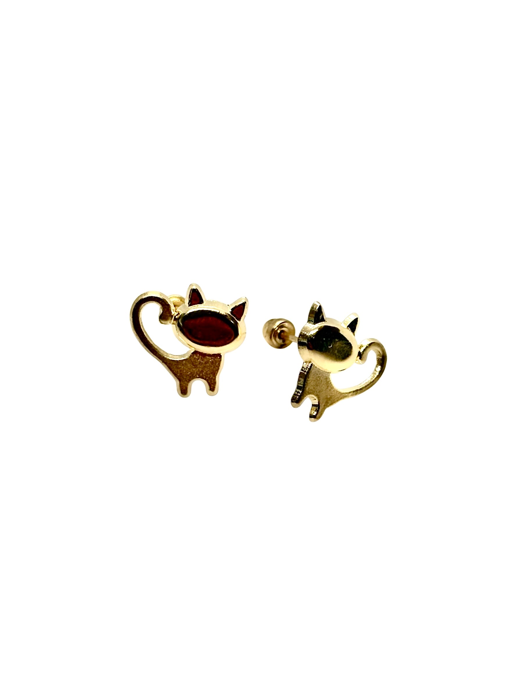 Par de Broquel en forma de gato liso echo de ORO 10K