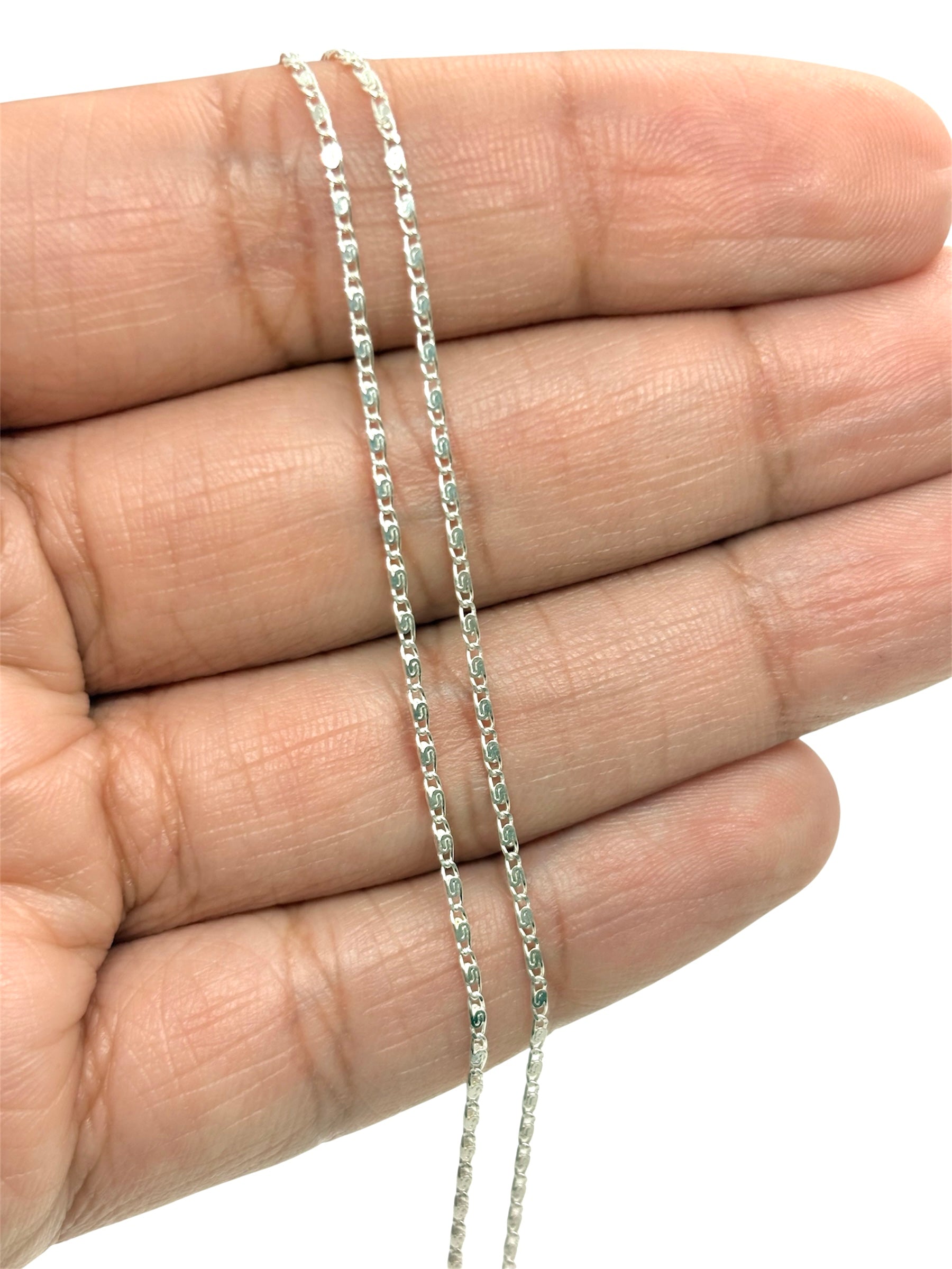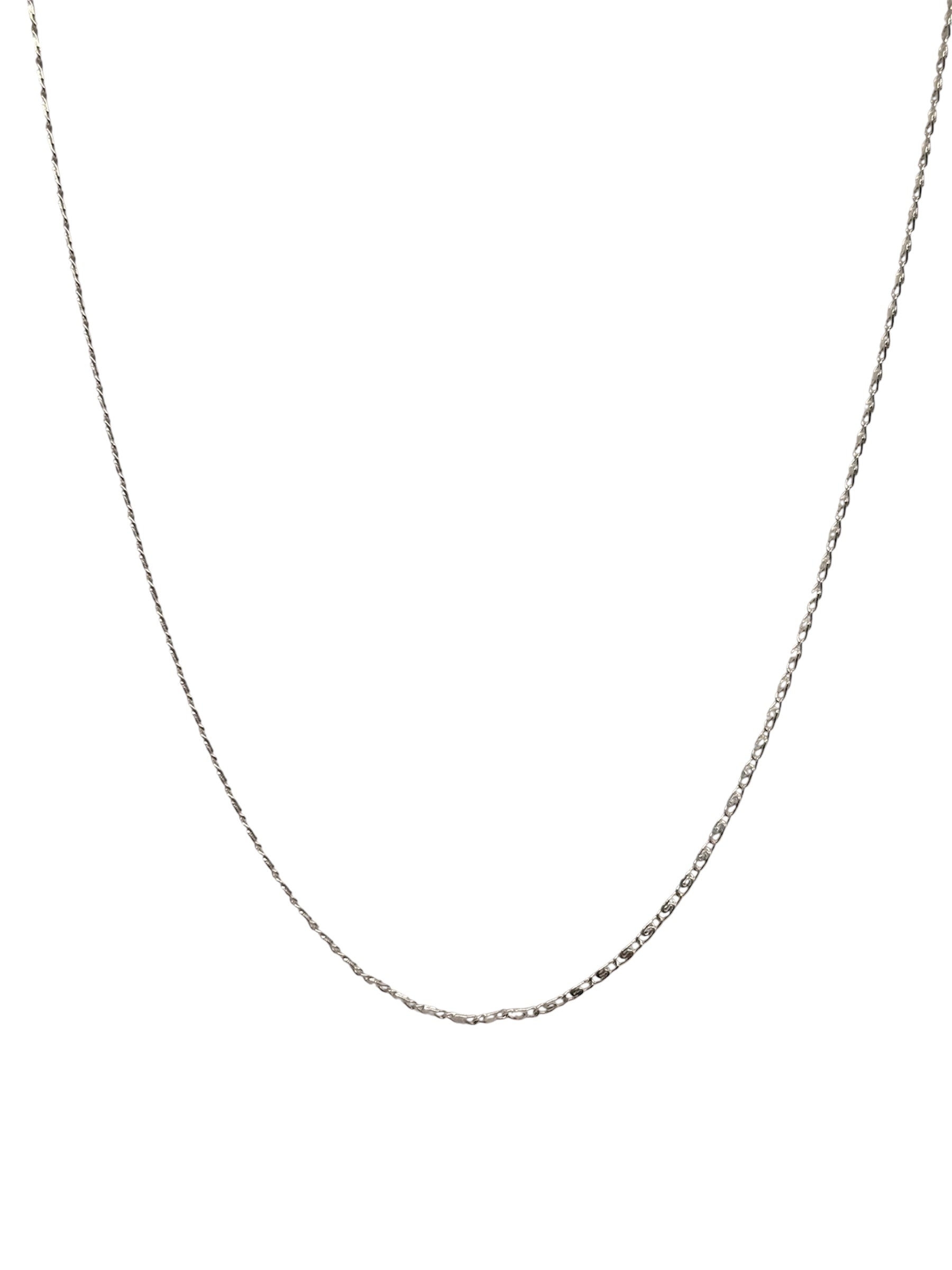 Delicado collar estilo caracol es elegante, esta cadena de plata destaca por su diseño fino y sofisticado. Su tejido tipo eslabón plano y pulido refleja la luz sutilmente, creando un brillo discreto que realza cualquier look.