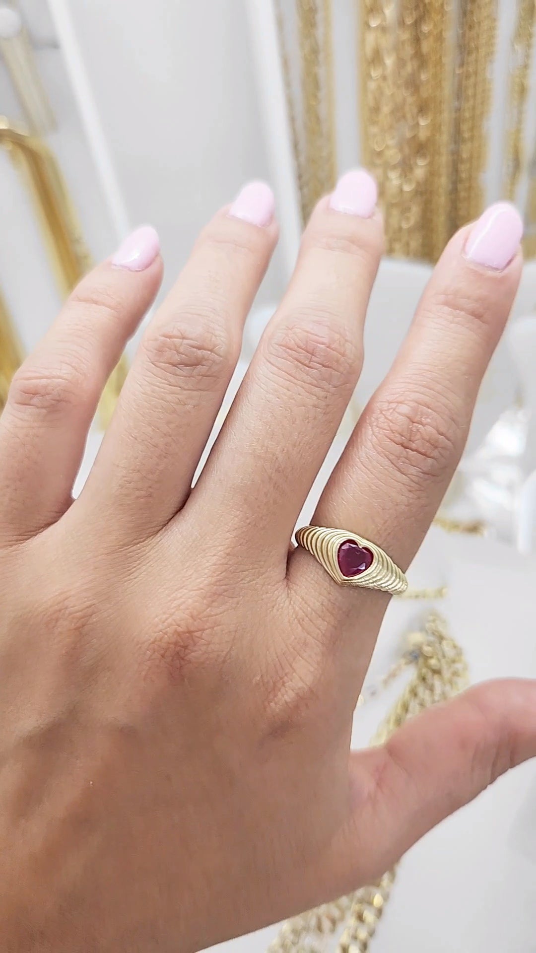 Anillo destellos corazón piedra rosa fiucsa oro 10k