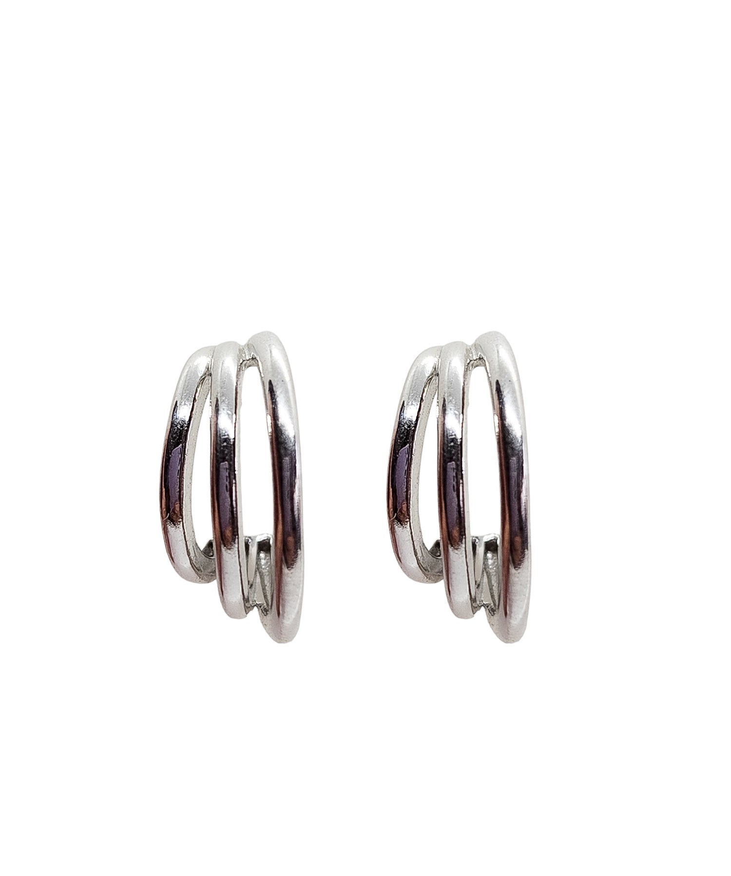 Agrega un toque de elegancia a tu estilo con estos aretes triple aro. Fabricados en plata 925 con baño de rodio, garantizan un toque de brillo y durabilidad. Un accesorio perfecto para cualquier ocasión.