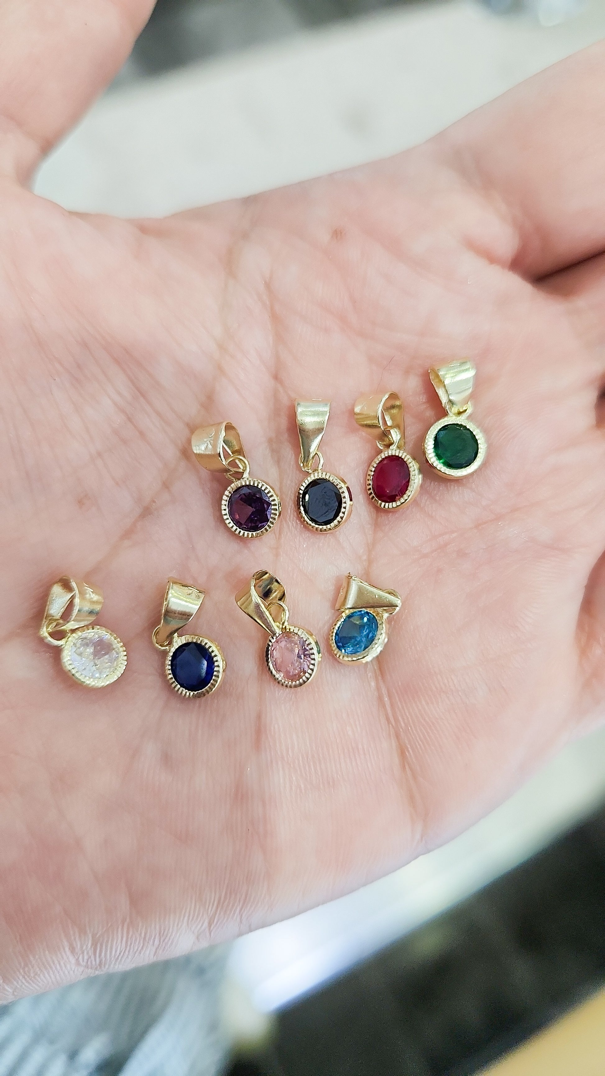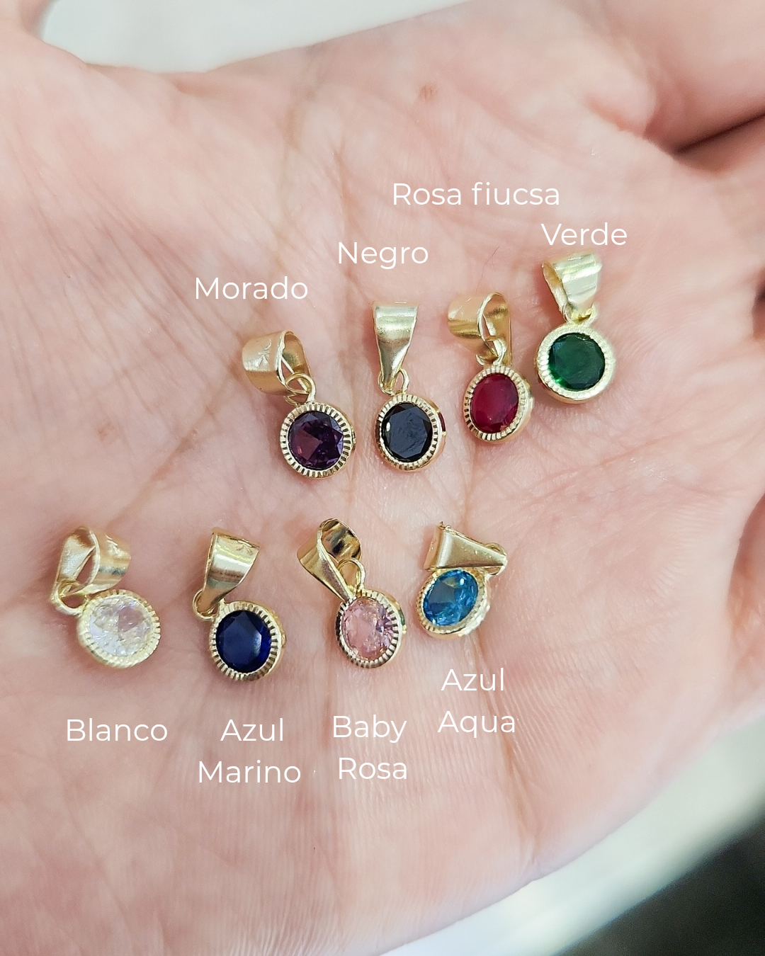 Dije redondo básico con bisel y piedra zirconia oro 10k