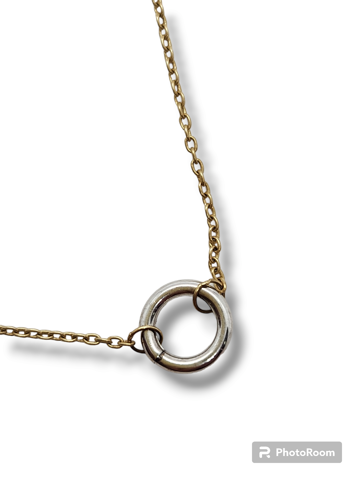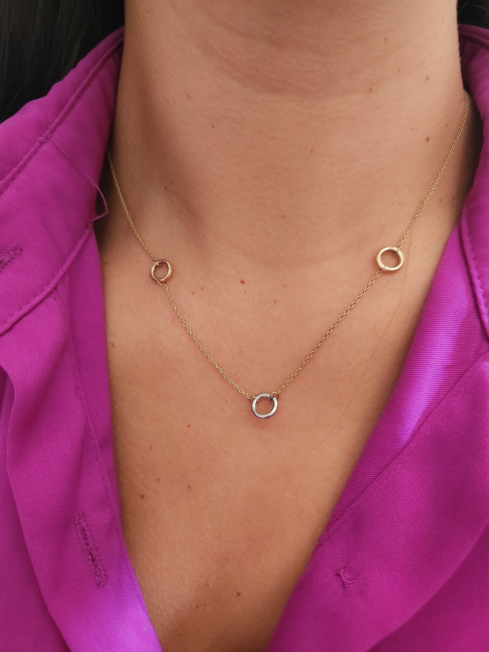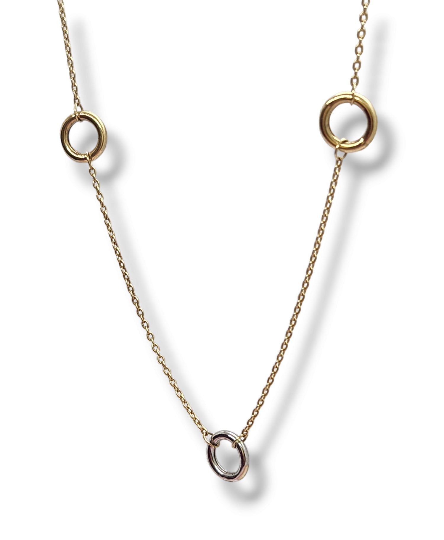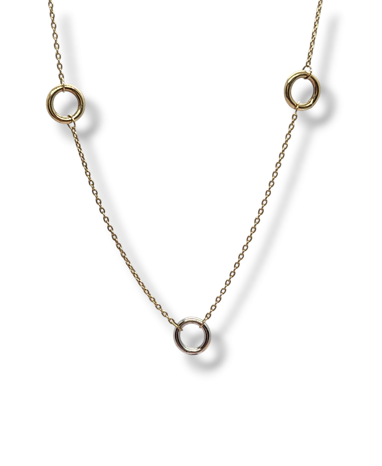 Gargantilla con 3 aros ( el central oro blanco) 10k.