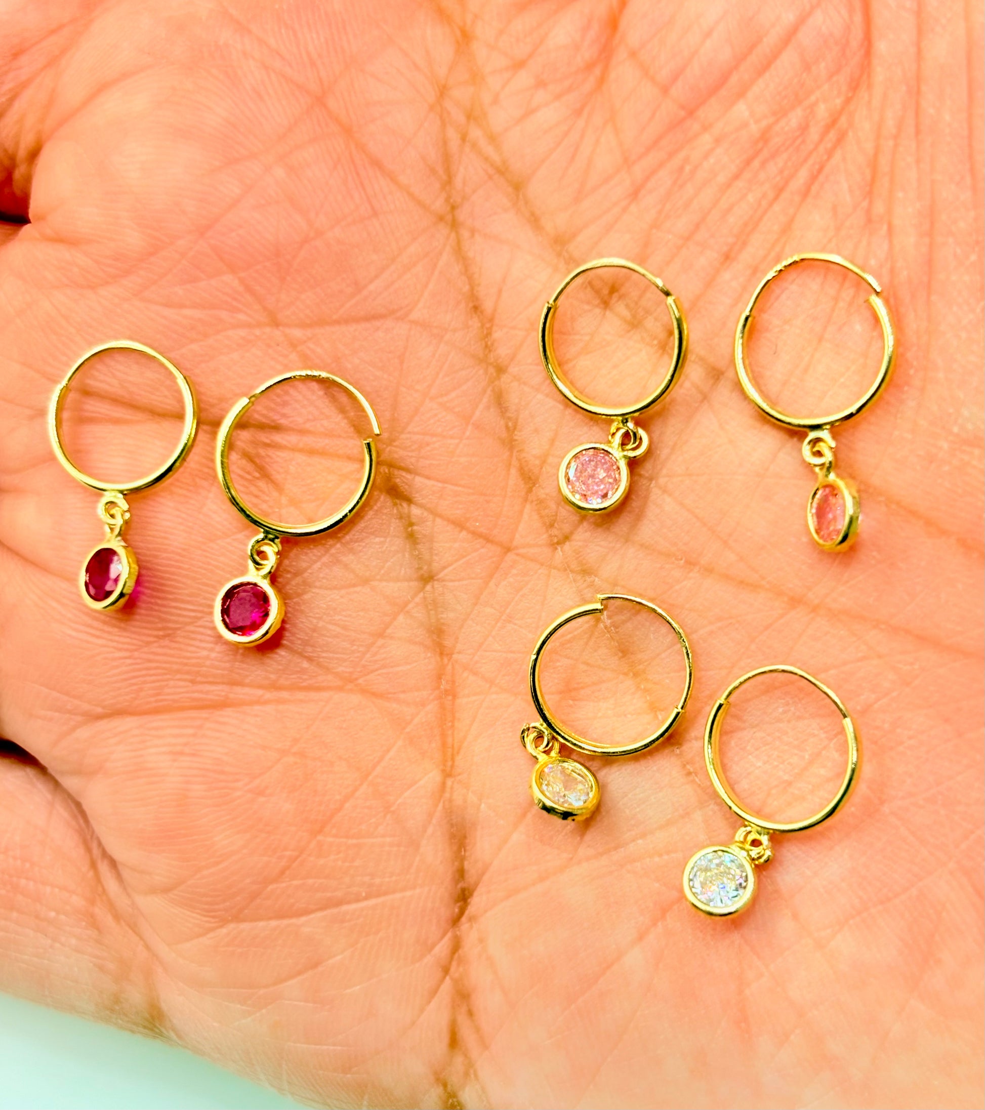 Par arracada mini con dije circonita Oro 10K