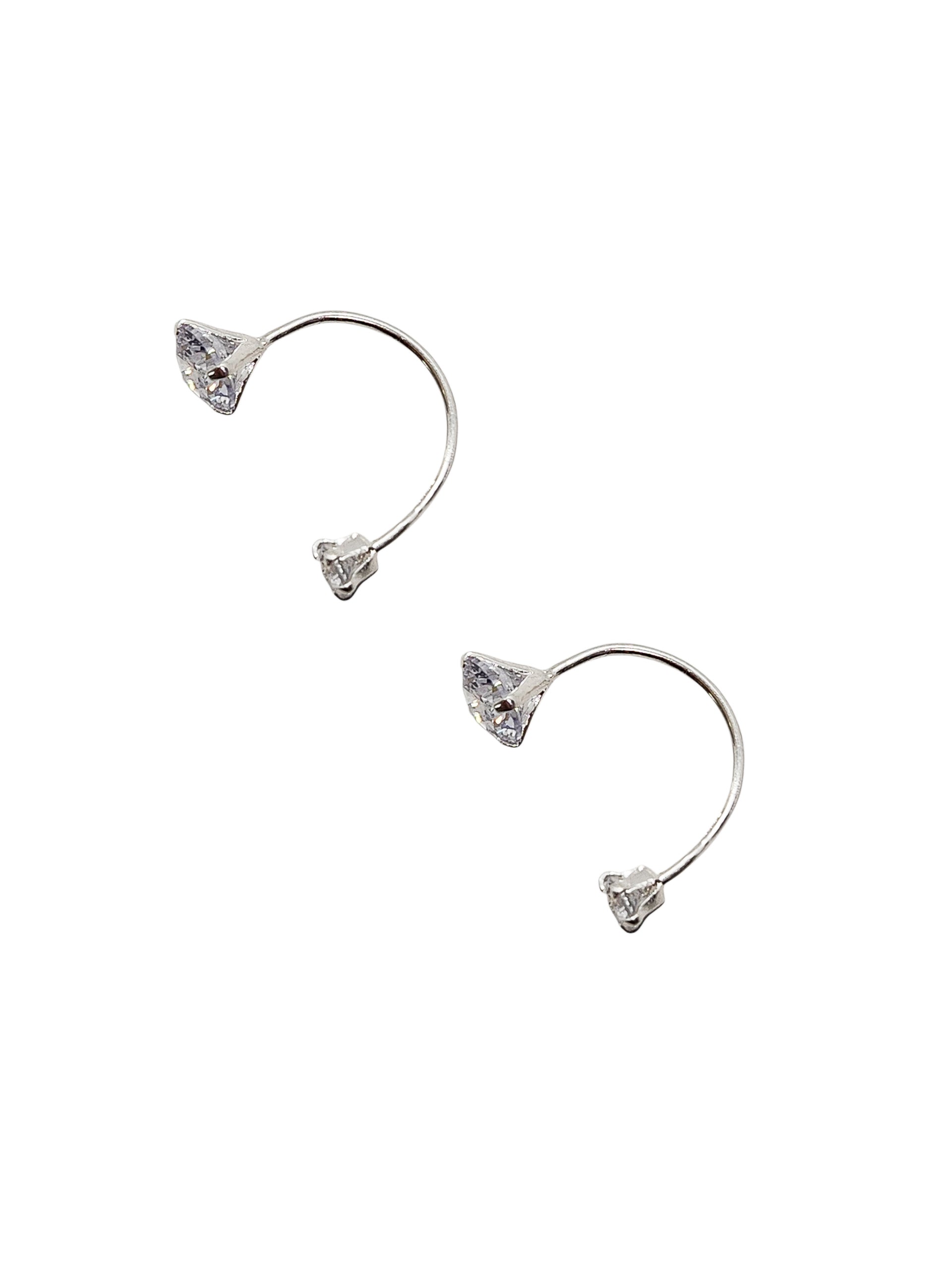 Pendiente curvo elaborado en plata 925 de alta pureza, engarzado con una piedra circonita de corte brillante. Su diseño ergonómico se adapta perfectamente a la curvatura natural de la oreja, ofreciendo comodidad durante todo el día. La circonita proporciona un brillo comparable al diamante, con una claridad excepcional que captura la luz desde cualquier ángulo. Ideal para quienes buscan elegancia sofisticada